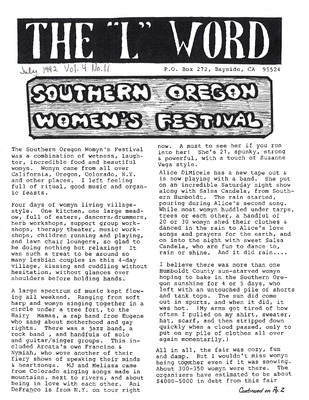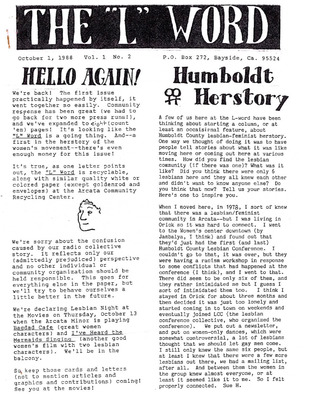 A lesbian feminist newsletter for the queer community and our friends, published monthly in Humboldt County since 1988.