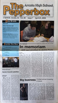 The Pepperbox is a student-run news organization for the students of Arcata High School in Arcata California, and the nearby residents since 1927.